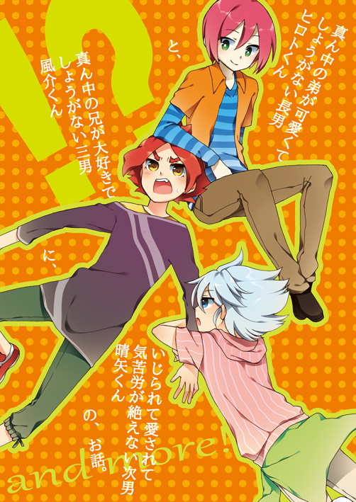 3TOP兄弟ネタやりたいねん…ヒロトが中3の三男で晴矢と風介が中2の双子(晴矢が兄)で治(中3)とリュウジ(中1)も兄弟 下の漫画ではカオスと同じクラスになってるけども